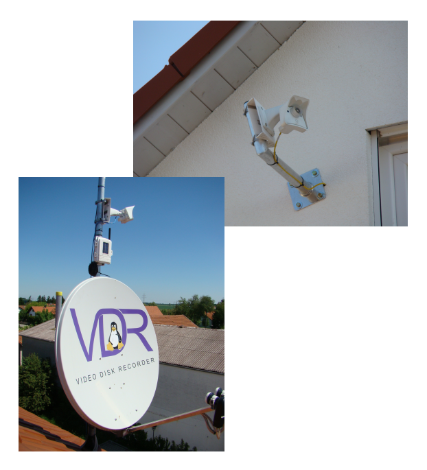 Als Wetterwebcam wird eine Mobotix M25 verwendet. Diese befindet sich in ca. 8 Meter Höhe, befestigt an der nördlichen Hausmauer. Aufgenommen wird, vom Betrachter aus gesehen, das Wolkenbild in westlicher Richtung über München. Im Bild der Kamera werden die aktuellen Wetterdaten eingeblendet und auf der Wetterwebseite alles 15 Sekunden aktualisiert. Für die Langzeitauswertung wird alle 10 Minuten ein Webcambild auf dem Server abgespeichert.